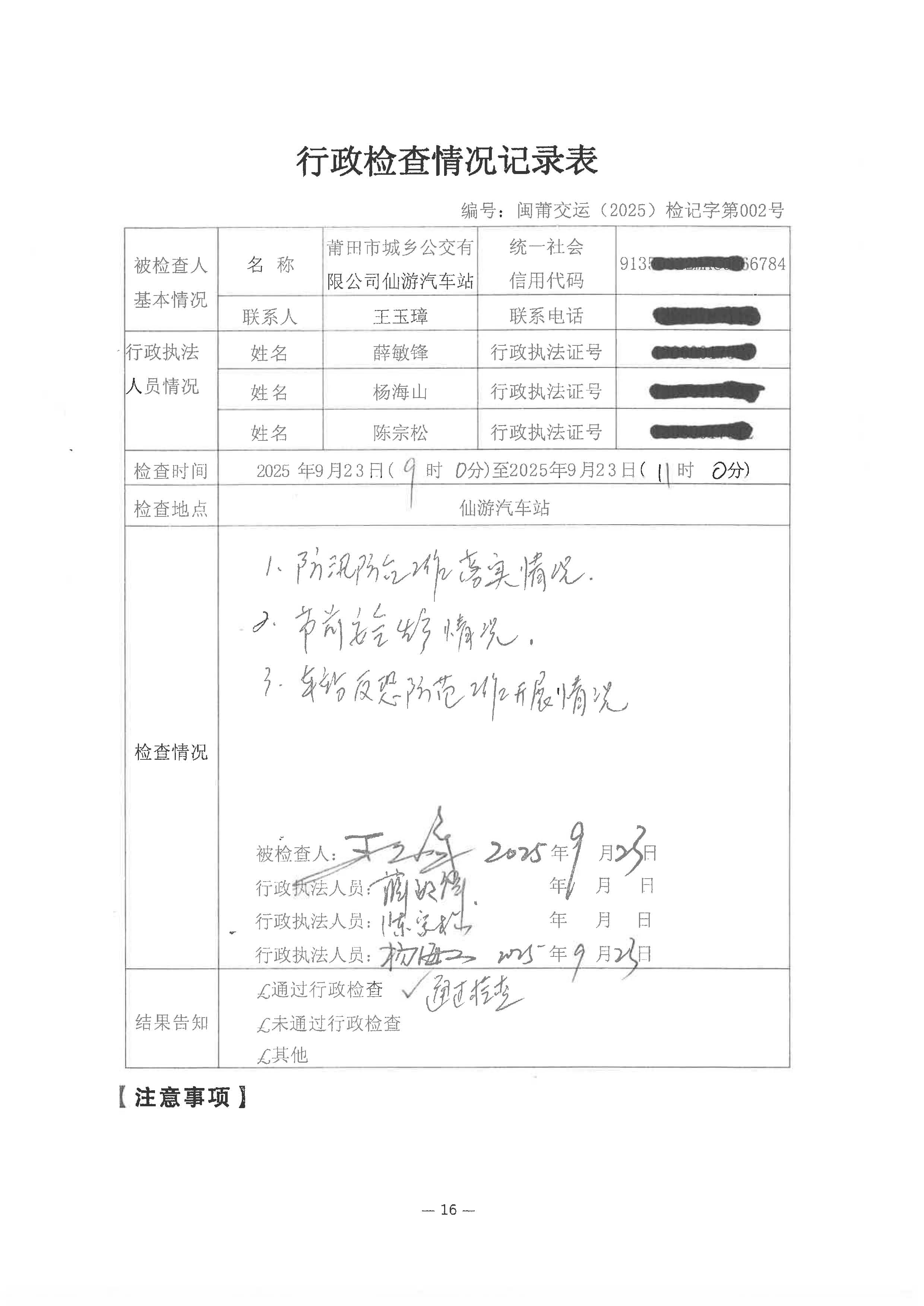 莆田市交通运输局2025年第三季度道路运输场站经营监管双随机抽查
