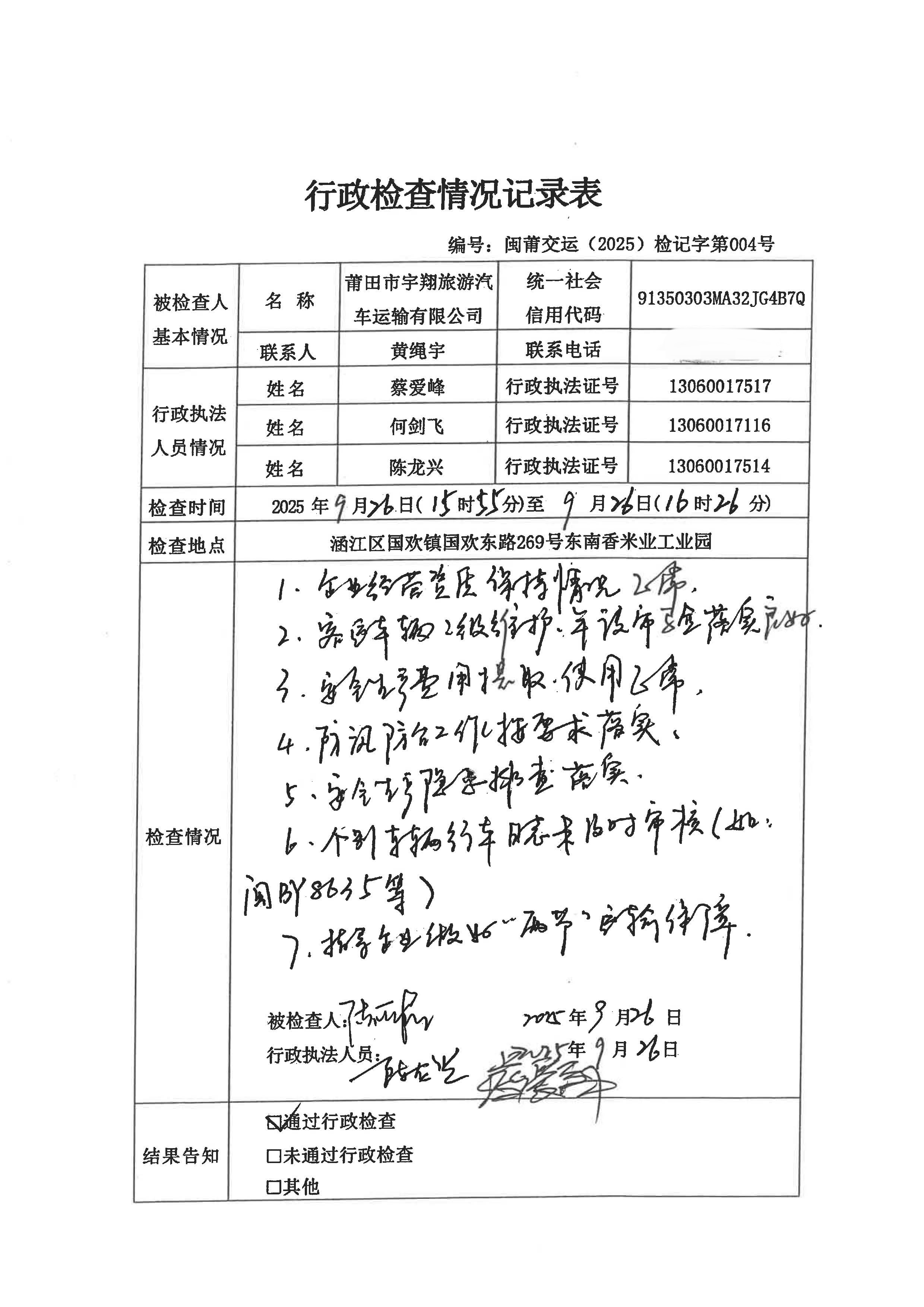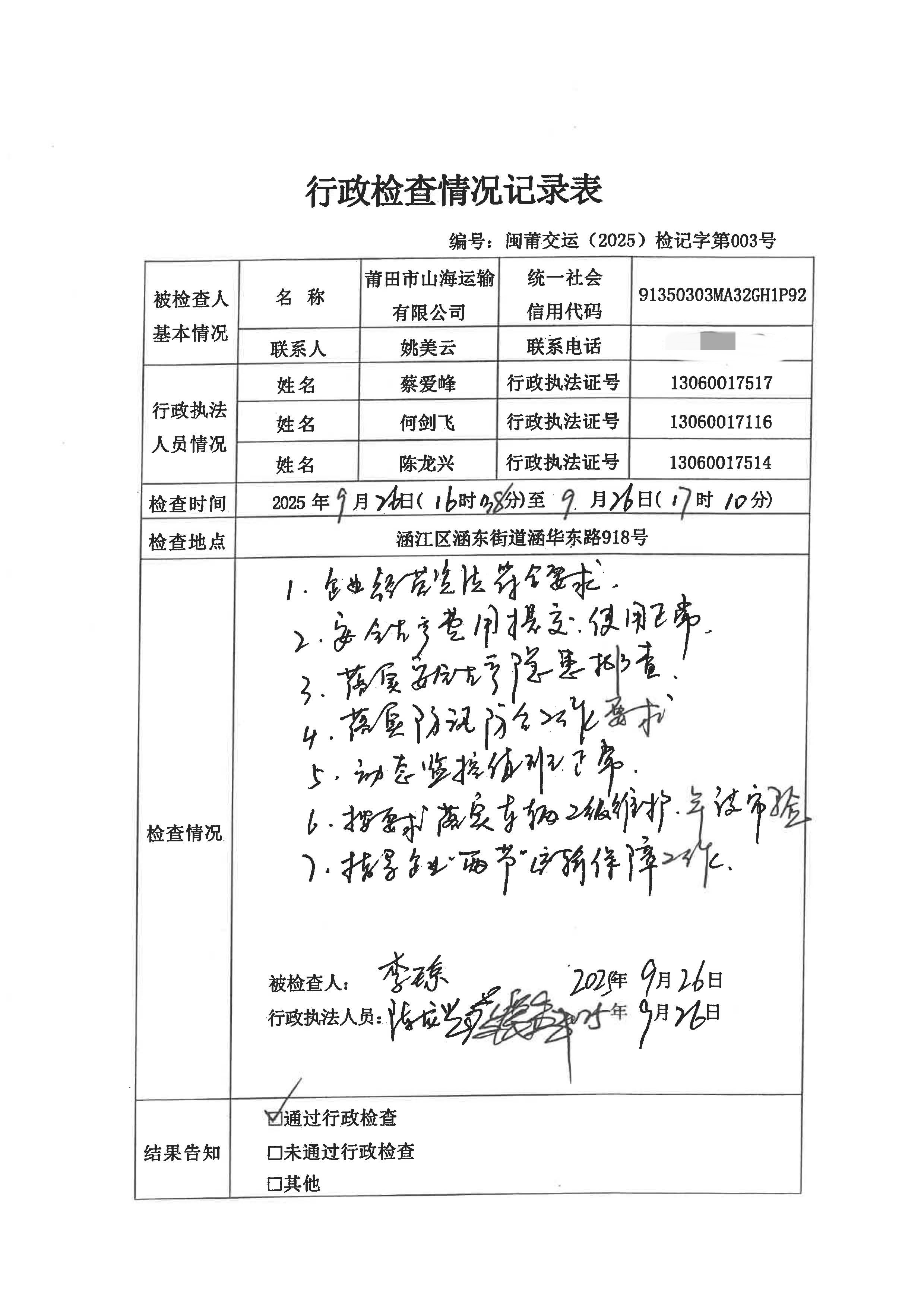 莆田市交通运输局2025年第三季度道路客运经营监督双随机抽查