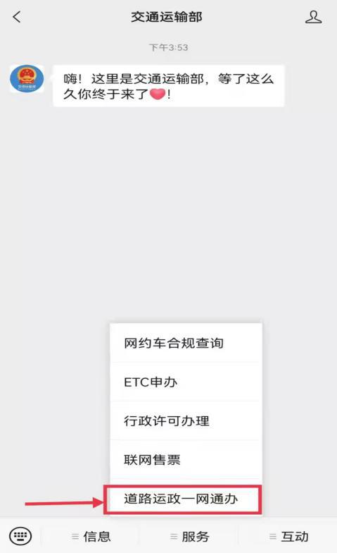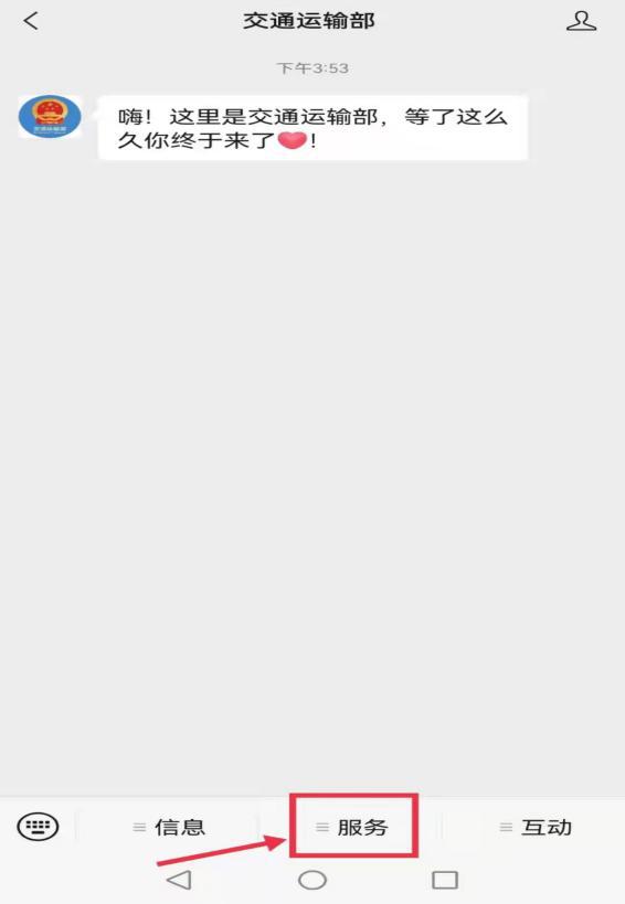 1、打开微信扫一扫,关注交通运输部微信公众号,跳转页面,点击“服务”
