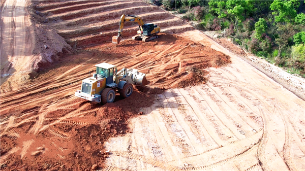 4月20日,在纵三线公路仙游境内段第五合同段项目工地,只见数台挖掘机正挥舞着巨臂进行土方作业,推土机、工程车等来回穿梭运送泥土、石料。