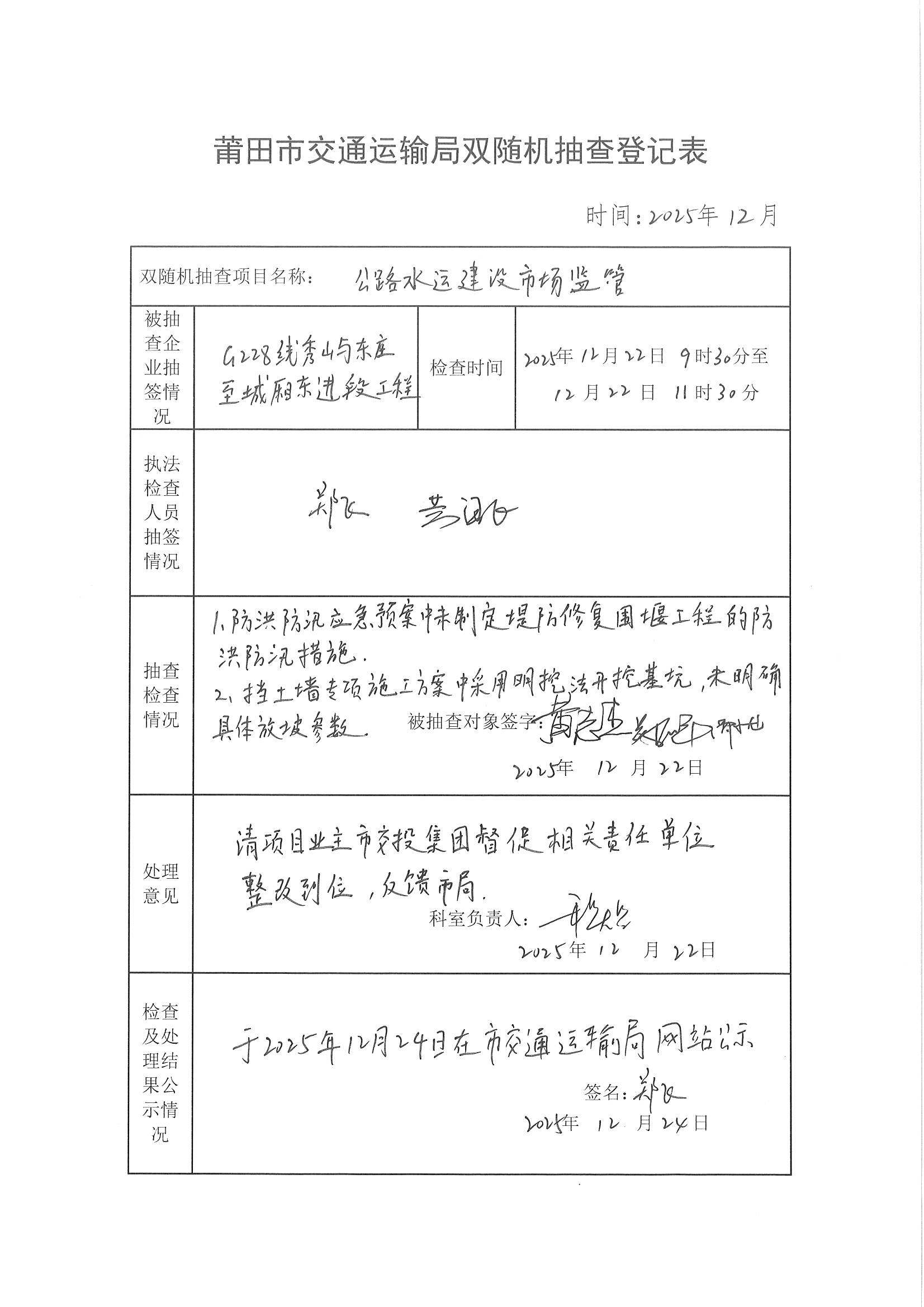 莆田市交通运输局2025年下半年公路水运建设市场监管双随机抽查