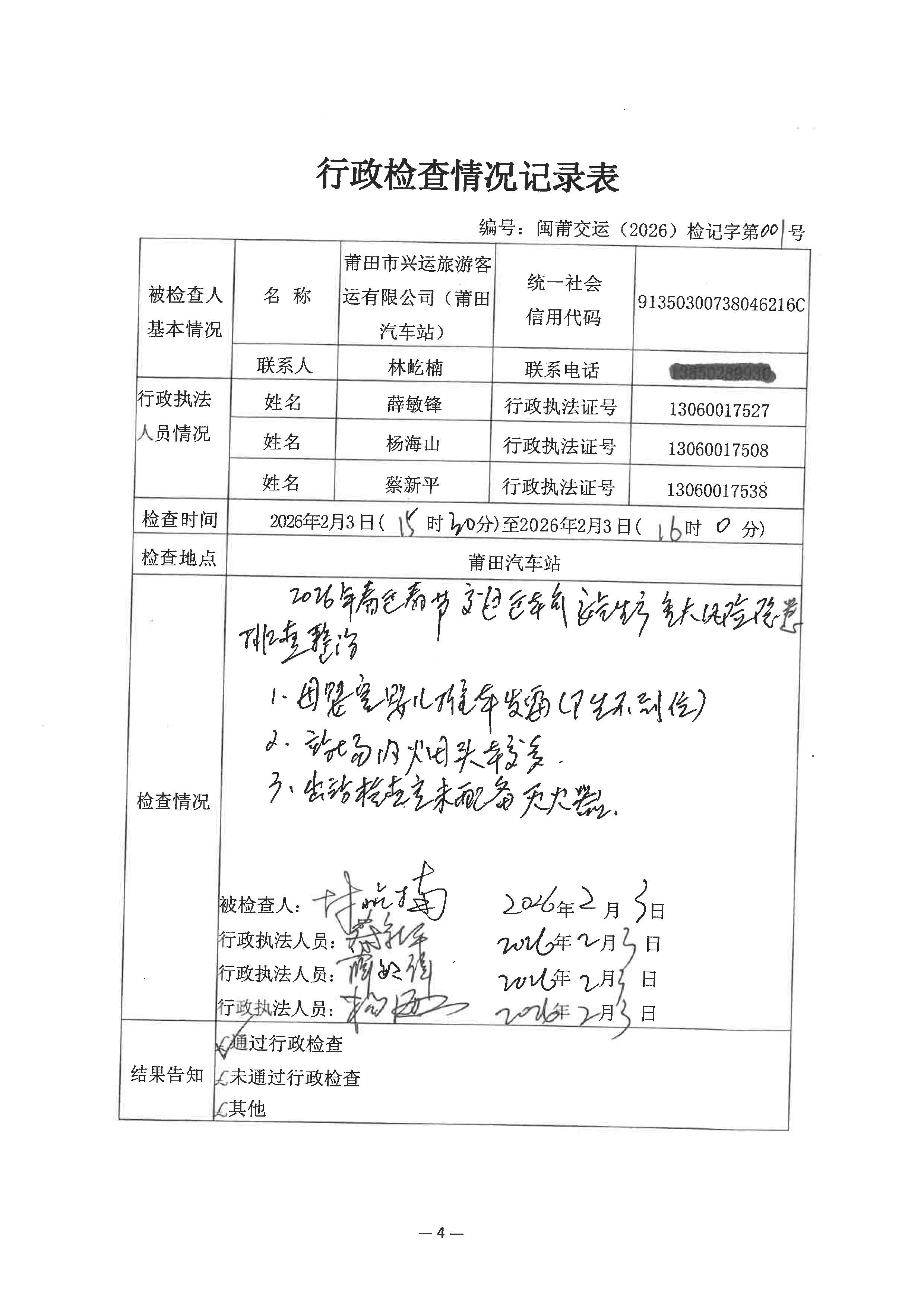 莆田市交通运输局2026年第一季度道路运输场站经营监管双随机抽查